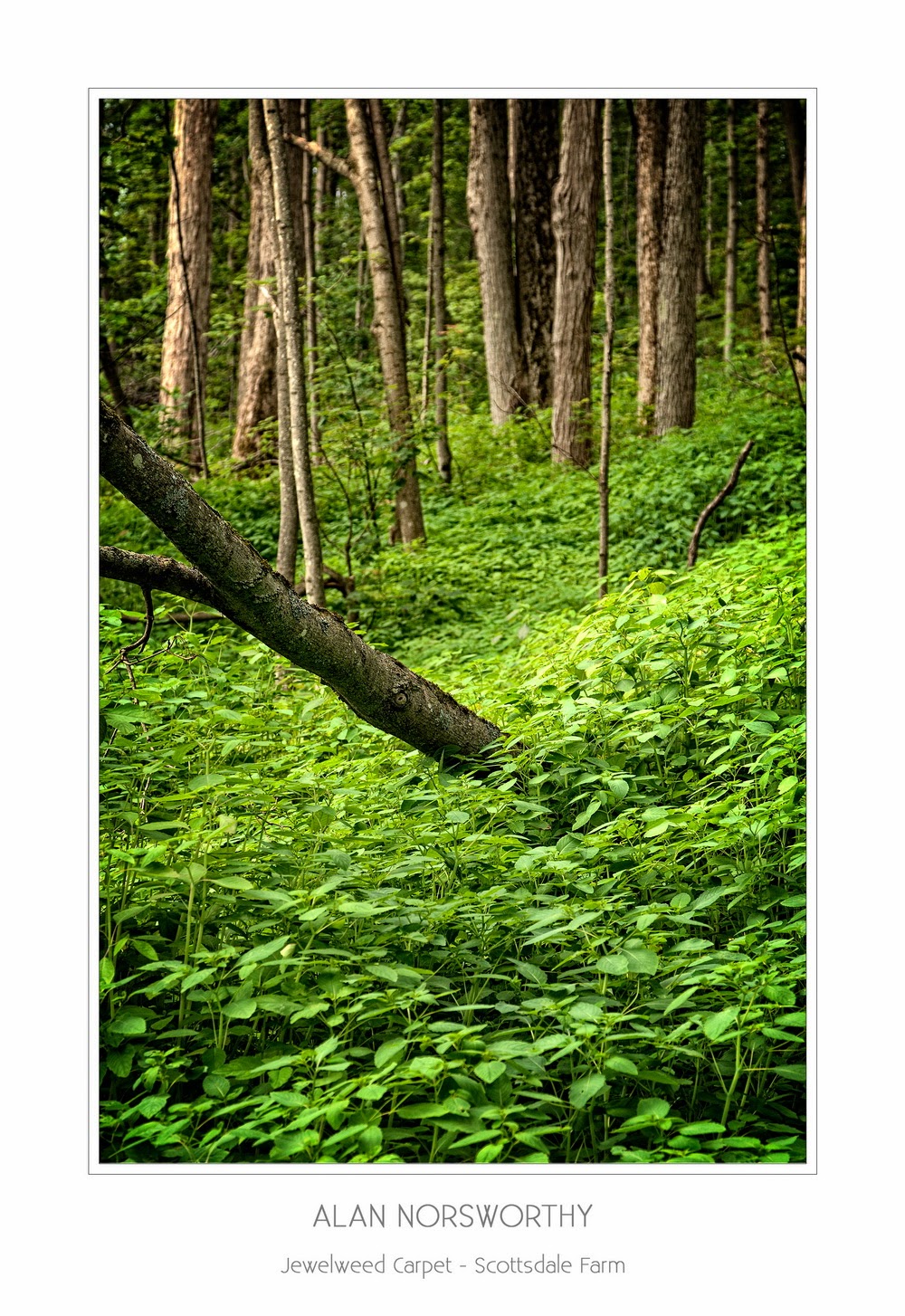 floor not covered with the jewelweed had a new coat, of young tree's.